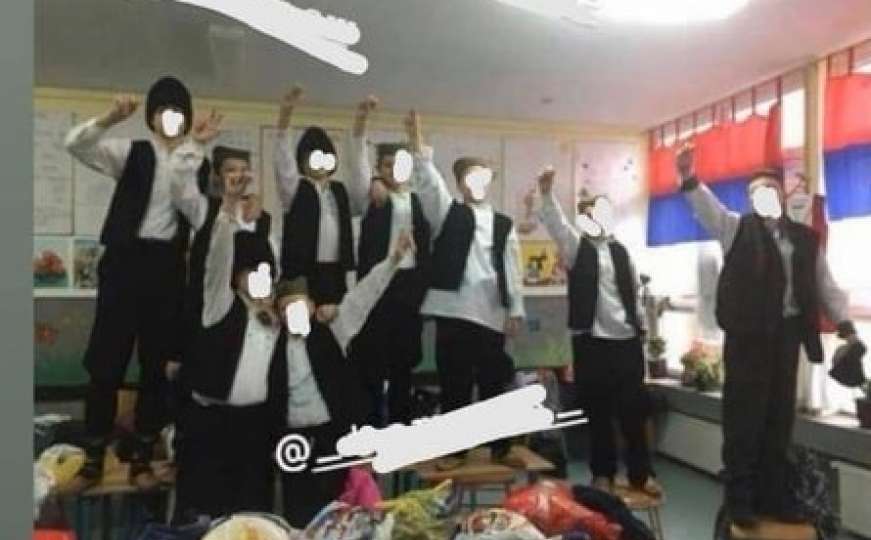 “Učenici su nosili srpsku narodnu nošnju kao izraz tradicije i kulture našeg naroda. Iz škole je potvrđeno da učenici na školskoj priredbi nisu nosili nikakva obilježja te da nisu koristili internet za vrijeme boravka u školi. Sporna fotografija objavljena je sa privatnih instagram naloga trojice učenika u popodnevnim časovima, u vrijeme kada nisu bili u školi. Dakle, pomenuta scena sa fotografije nije bila dio zvanične priredbe upriličene povodom školske slave Svetoga Save. Rukovodstvo i stručna služba škole obavili su razgovor sa učenicima koji su objavili spornu fotografiju i izrekli im adekvatne mjere za neprimjereno ponašanje. Stručni tim škole zadužen je da održi sastanke sa roditeljima ovih učenika i skrene im pažnju da su odgovorni za ponašanje svoje djece, između ostalog, i na društvenim mrežama”, rekli su iz Ministarstva prosvjete i kulture RS.
