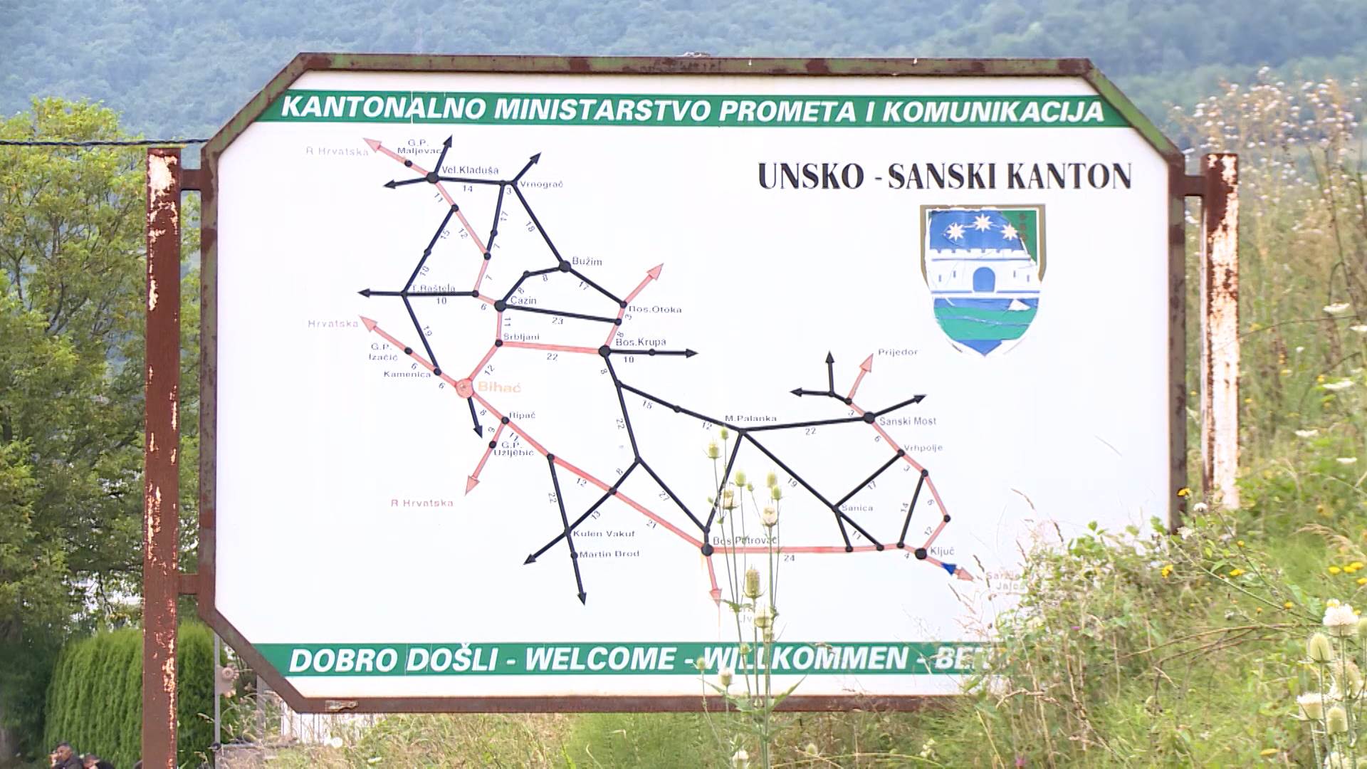 Tabla koja označava ulazak u Unsko-sanski kanton za pojedine migrante predstavlja nepremostivu prepreku. Autobuse koji dolaze iz pravca Sarajeva, policija ovdje zaustavlja, i odvaja migrante. Ostavljeni pokraj magistralnog puta, primorani su da borave u improviziranom šatorskom naselju, nadajući se da će nekako uspjeti da prođu policijsku barijeru. Zbog dosadašnjih negativnih iskustava, kažu, ne žele govoriti pred TV kamerama.
