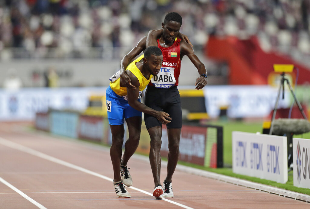 Dabo je zagrlio iscrpljenog Busbyja i pomogao mu da prođe kroz cilj, a publika u Dohi je aplauzom, nagradila prije svega human gest takmičara iz Gvineje Bisao.